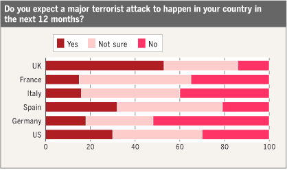 FT: "British citizens were also the most likely to predict a "major terrorist attack" in their country in the next 12 months; consider Muslims "a threat to national security", and believe Muslims had too much political power in their country. [...] The findings suggest that terrorist plots against the UK, including the London bombings of July 7 2005, have hardened British attitudes towards Muslims. [...]"